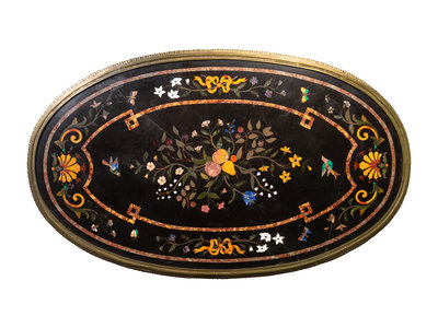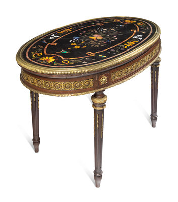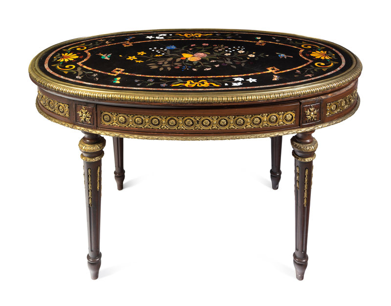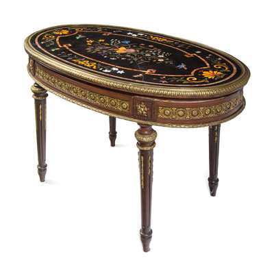 A Louis XVI Style Gilt Bronze Mounted Pietra Dura-Top Center Table