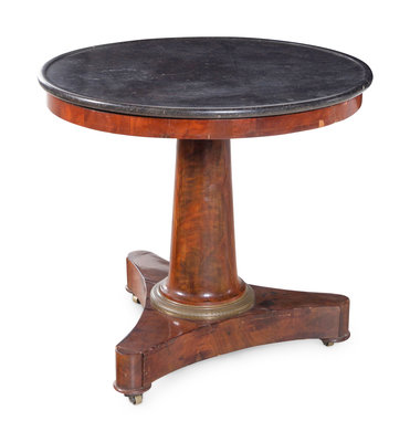 An Empire Style Gilt Bronze Mounted Mahogany Marble-Top Center Table
