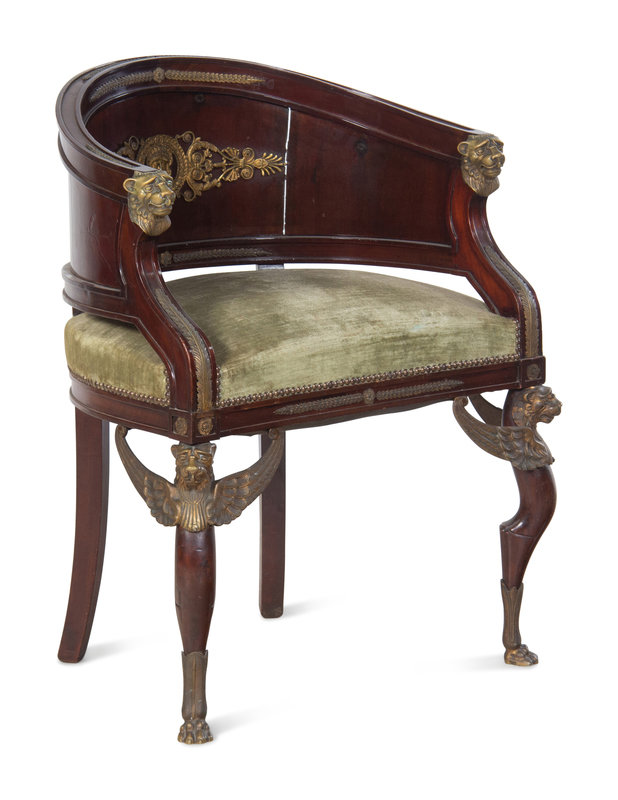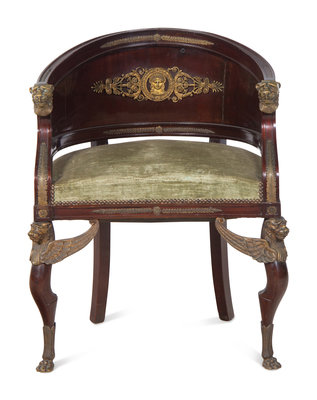 An Empire Style Gilt Bronze Mounted Mahogany Bergère de Bureau