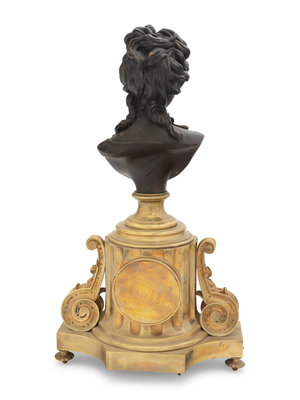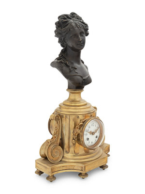 A French Gilt and Patinated Bronze Clock with a Bust of a Lady