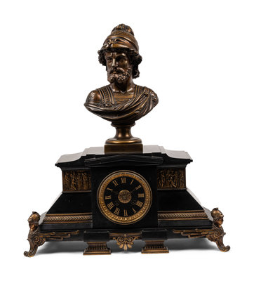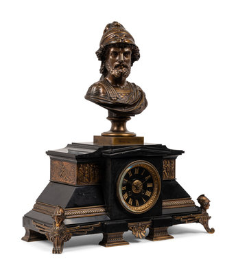 A French Gilt Bronze and Black Marble Mantel Clock