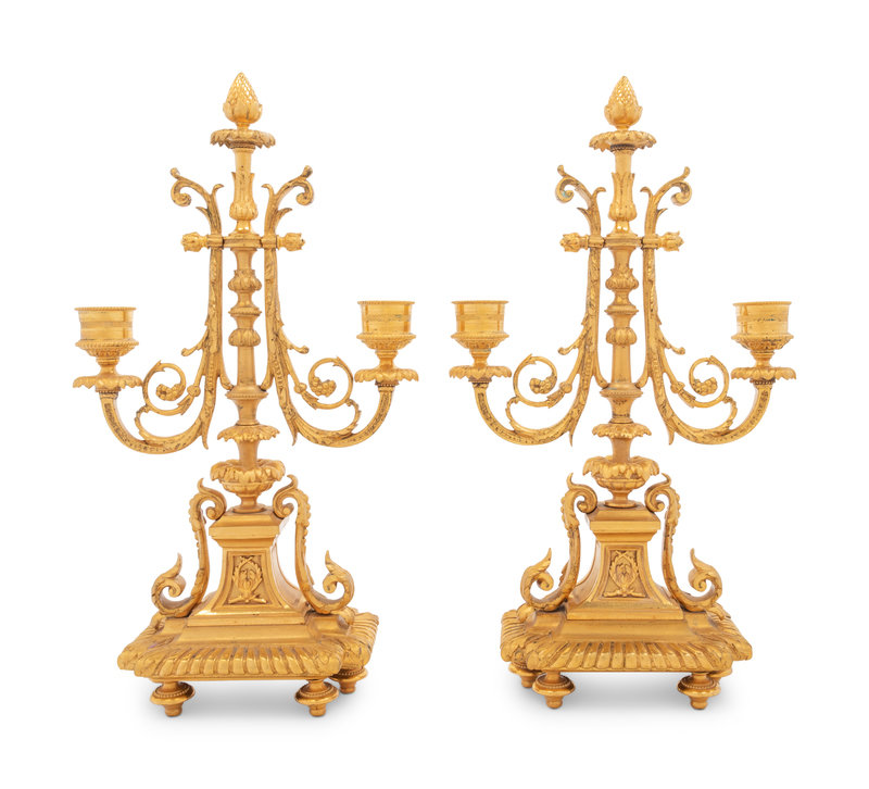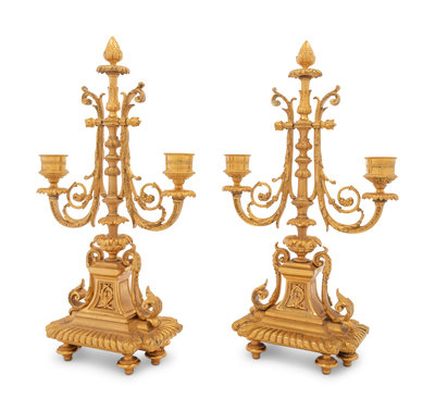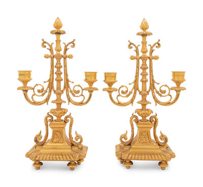 A Pair of French Gilt Bronze Two-Light Candelabra