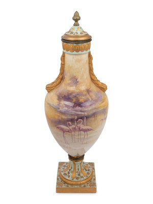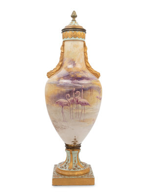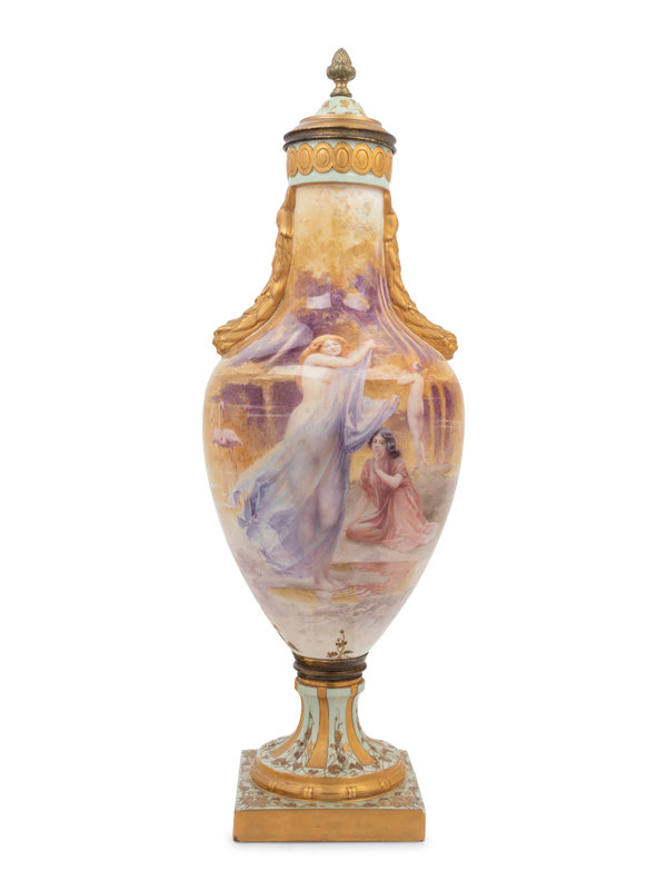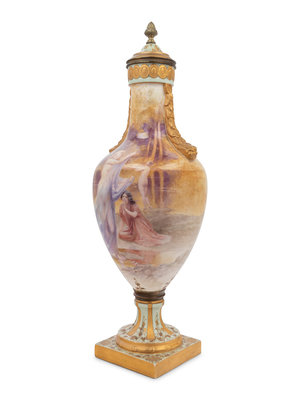 A French Painted and Parcel Gilt Porcelain Urn