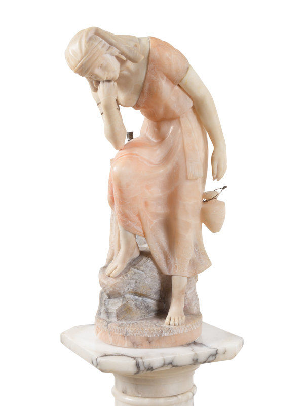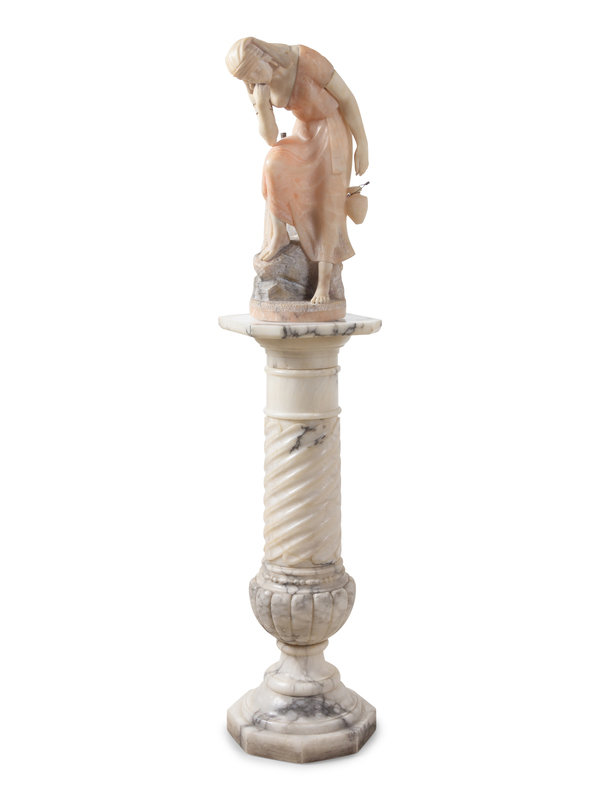 carved alabaster with associated pedestal