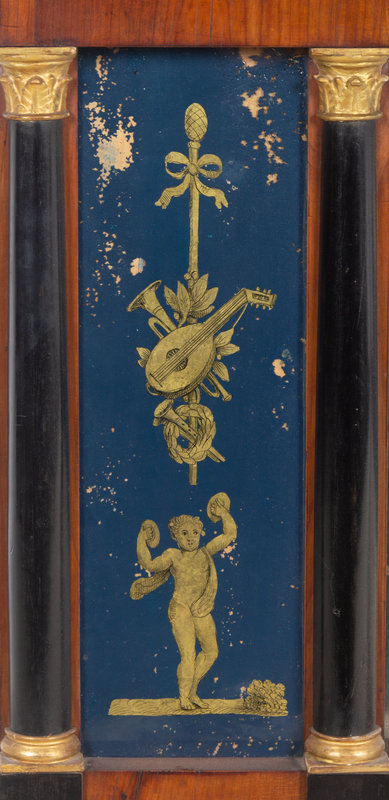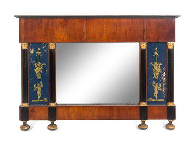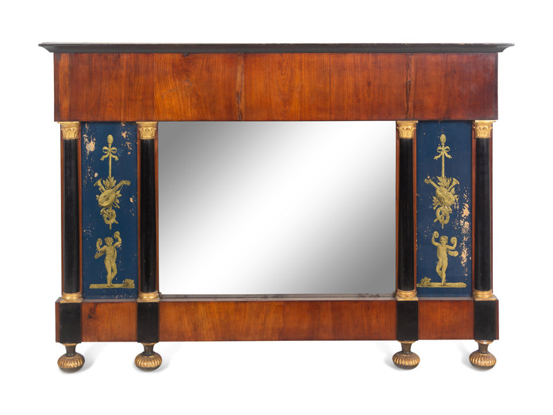 A Continental Parcel Gilt, Ebonized Walnut and Églomisé Overmantel Mirror