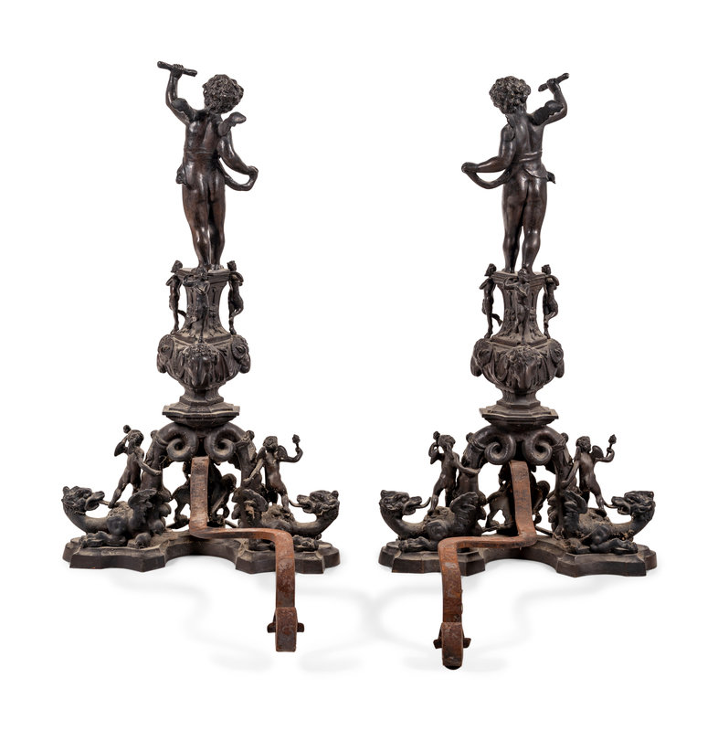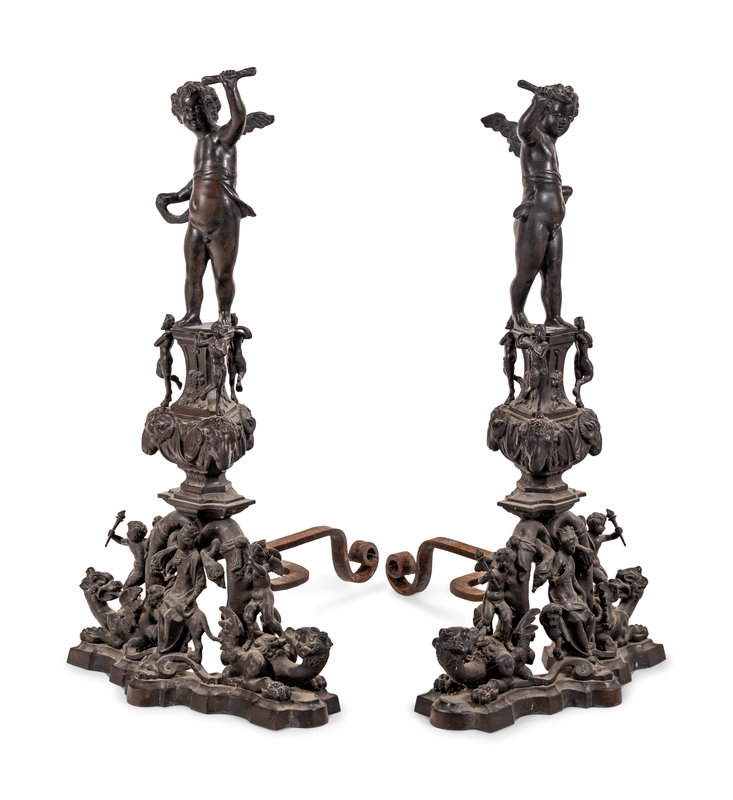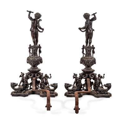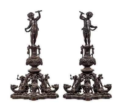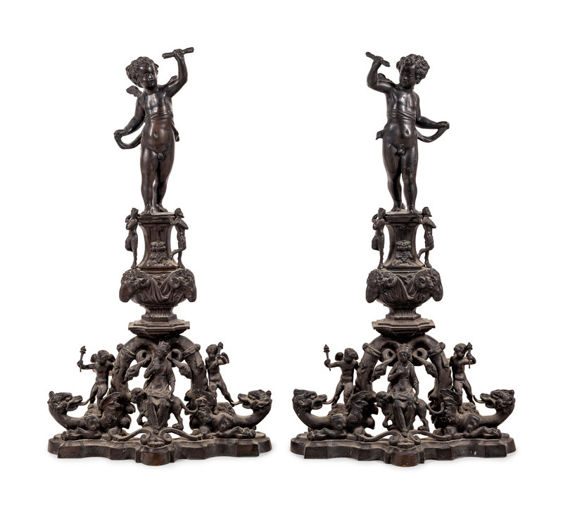 A Pair of Baroque Style Bronze Figural Andirons