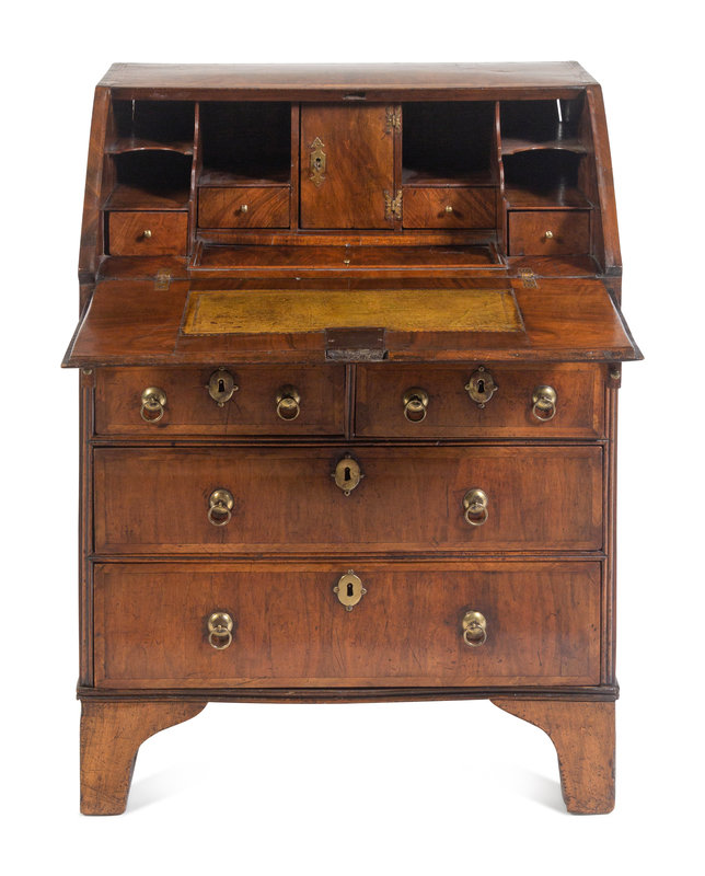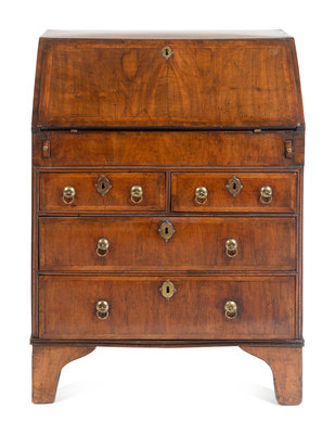 A George II Walnut Slant-Front Bureau