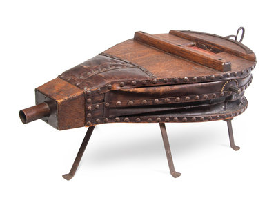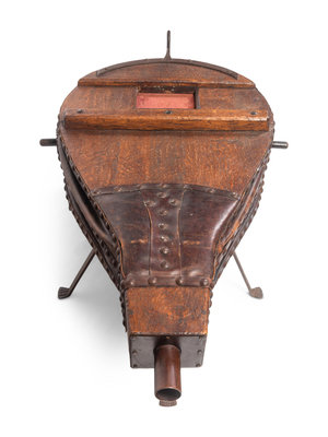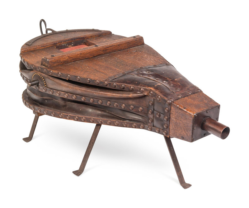 A Large Oak and Leather Bellows on Stand
