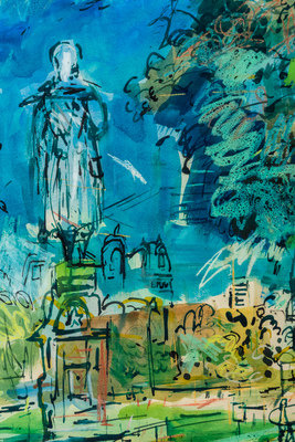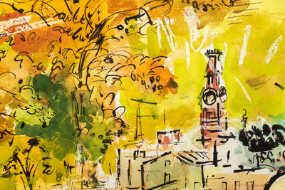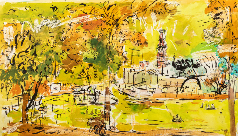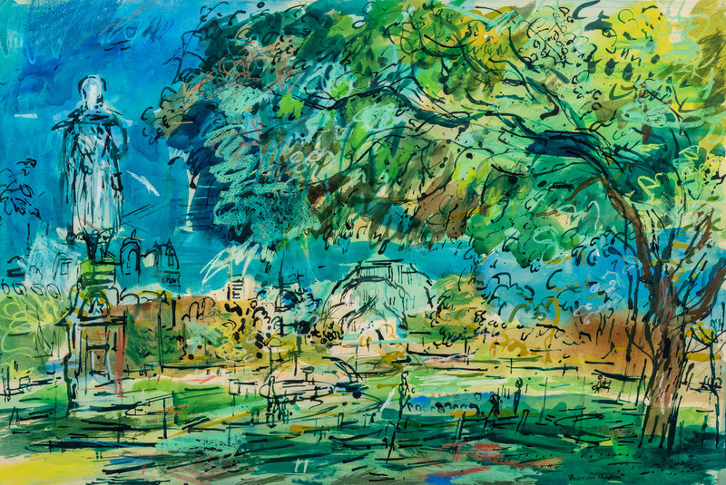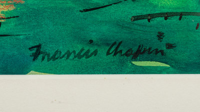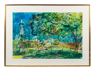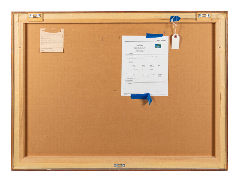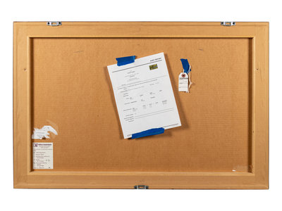 Larger example: 21 1/4 x 31 1/2 inches (sight); smaller example: 16 3/4 x 29 inches (sight).