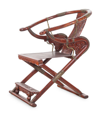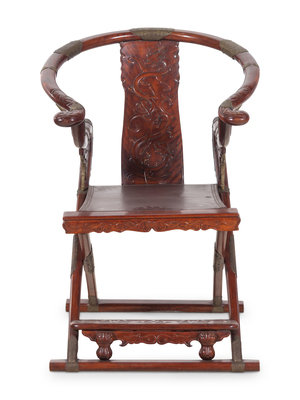 A Chinese Possibly Huanghuali Wood Folding Armchair, Jiaoyi