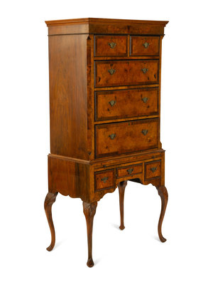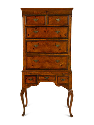 A Queen Anne Style Walnut Flat-Top Chest on Stand