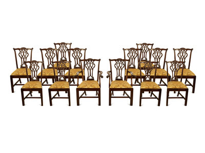 A Set of Fourteen George III Style Mahogany Dining Chairs