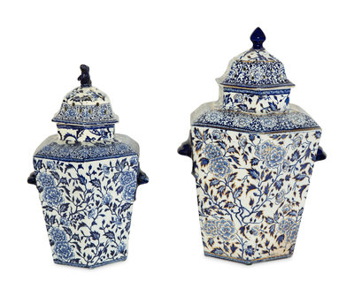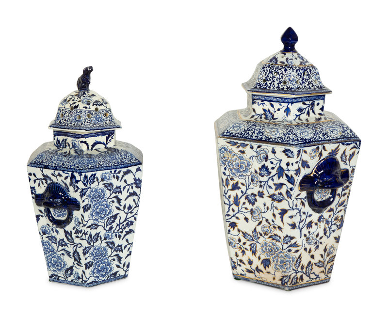 Two English Transfer-Decorated Stoneware Potpourri Vases