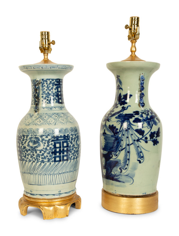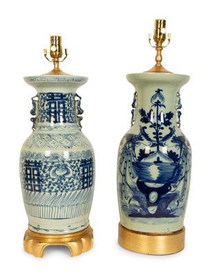 Two Chinese Export Porcelain Vases Mounted as Lamps