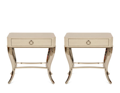 A Pair of Bernhardt Painted Wood and Chrome Side Tables