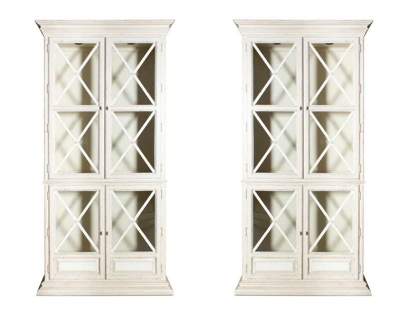 A Pair of Drexel Heritage Neoclassical Style Painted Glazed Door Cabinets