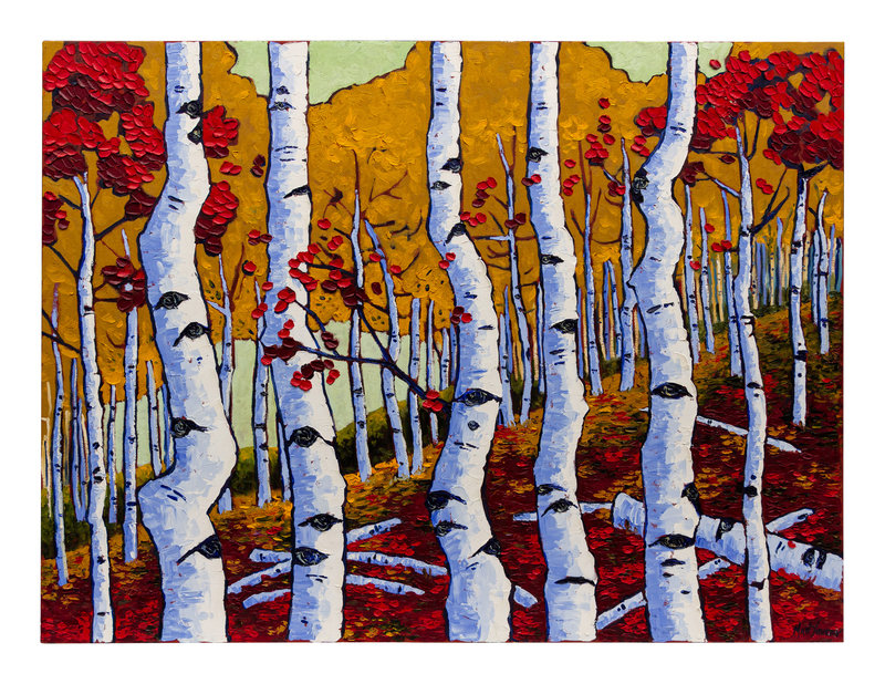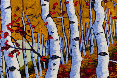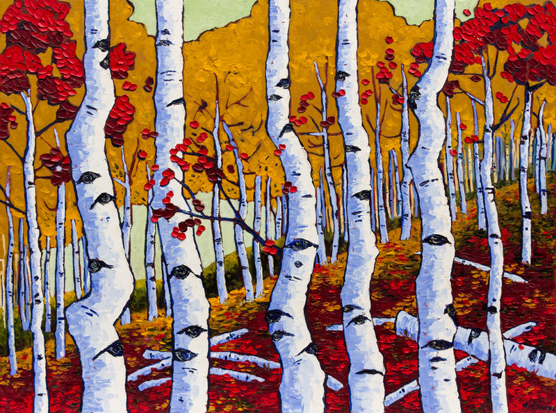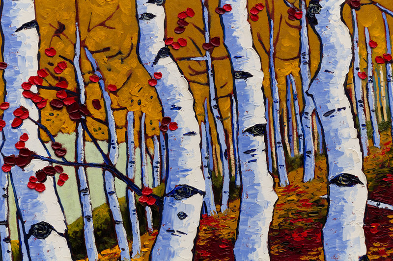 Aspen Trees with Red Autumn Leaves