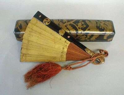 A JAPANESE LACQUER FAN AND BOX