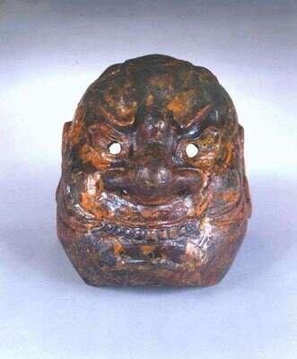 A JAPANESE CARVED WOOD AND LACQUER GIGAKU MASK OF THE CHARACTER KONRON