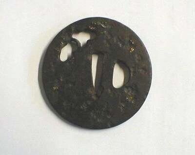 Circular, the surface left rough with a mixed metal inlaid design of ants, dia: 3 in.