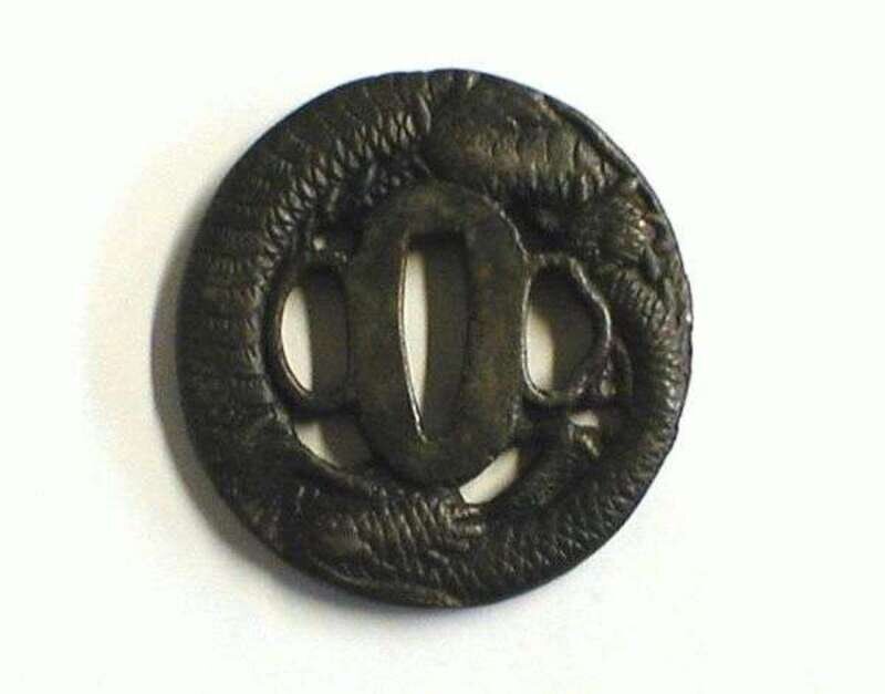 Oval with a pierced and carved design of a writhing dragon, l: 2.75 in.