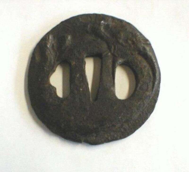 Circular and rough with a two sided relief design of an ox, l: 3 in.