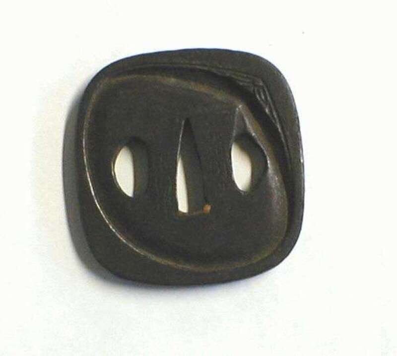 More or less square with rounded corners and a carved design of a seashell, l: 2.6 in.