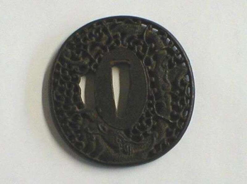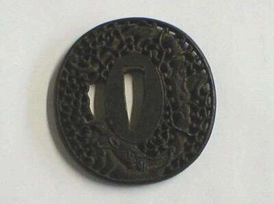 Oval with a pierced design of a dragon amid swirls, l: 2.75 in.