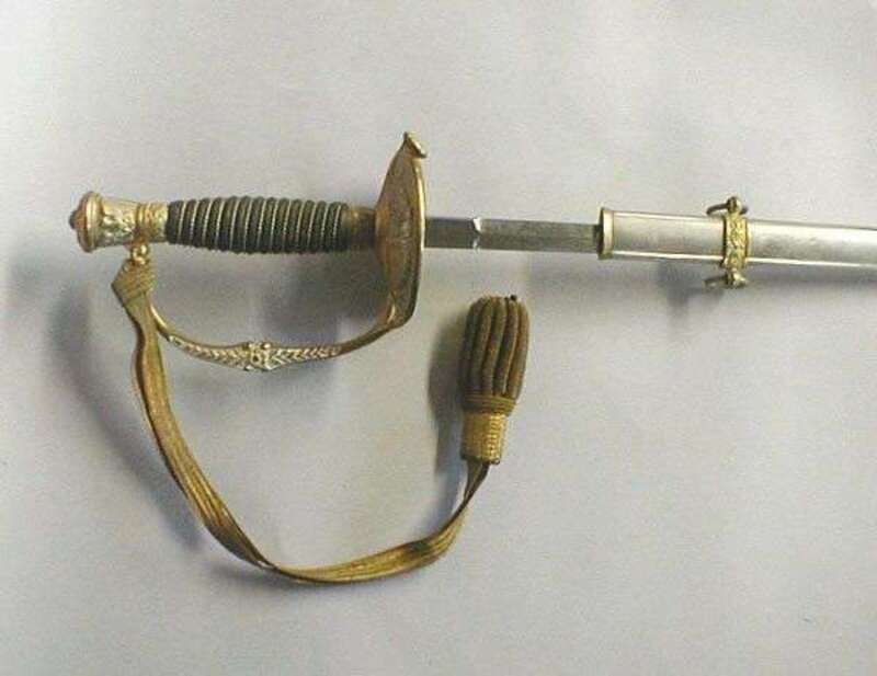 the maker, the scabbard of nickeled steel with brass mounts; underside of langet engraved to the owner: "G. W. York, Buffalo, N. Y.," retains a gold boullion sword, knot, l: 37.75 in.