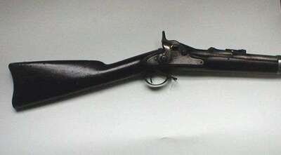 .45-70 cal., with trapdoor breech-loading action, 1863 dated lockplate, overall spotting to metal, overcoated stock.