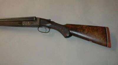 12 gauge, double-barrel, Grade 4 or 5 with fully engraved case-hardened receiver having game birds in panels, carved and checkered pistol grip and forestock, blued barrels (95%), tiny rust area on barrel, overall length: 46 in.