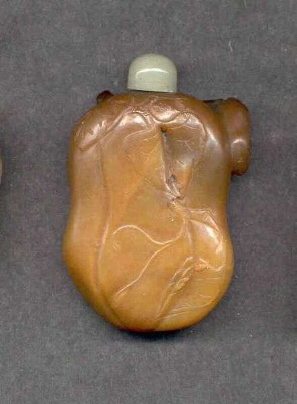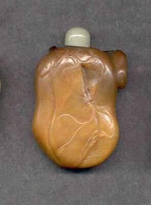 A CHINESE CARAMEL JADE SNUFF BOTTLE