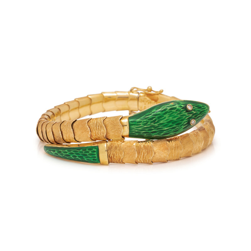 YELLOW GOLD AND ENAMEL SNAKE BRACELET