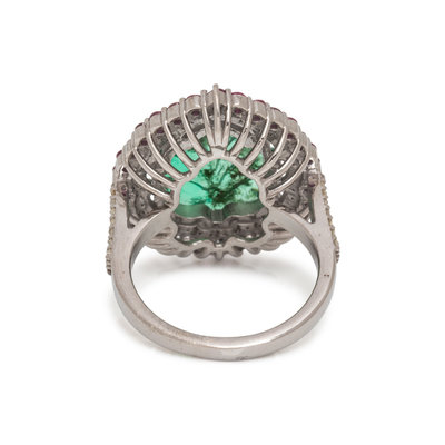 EMERALD, RUBY AND DIAMOND RING