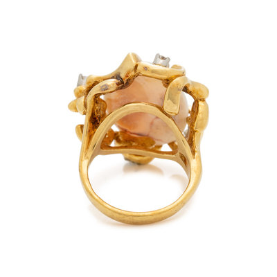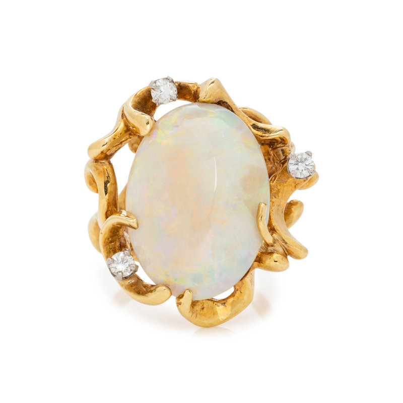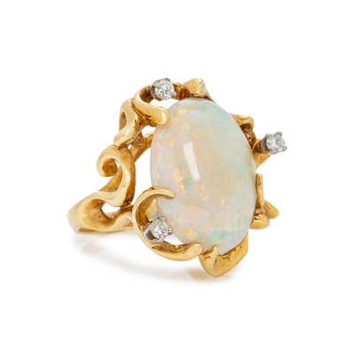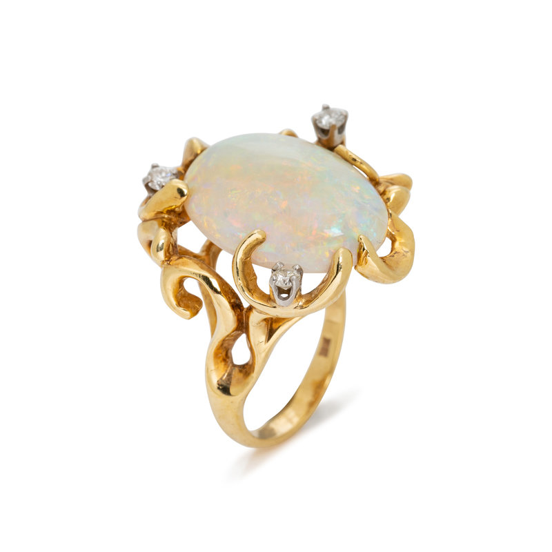 YELLOW GOLD, OPAL AND DIAMOND RING