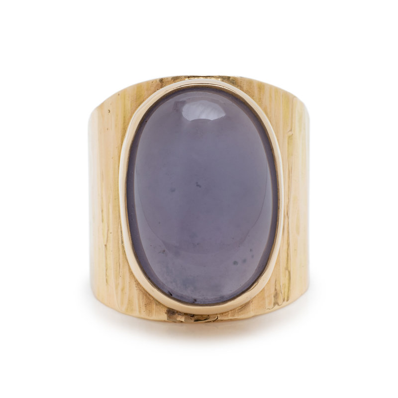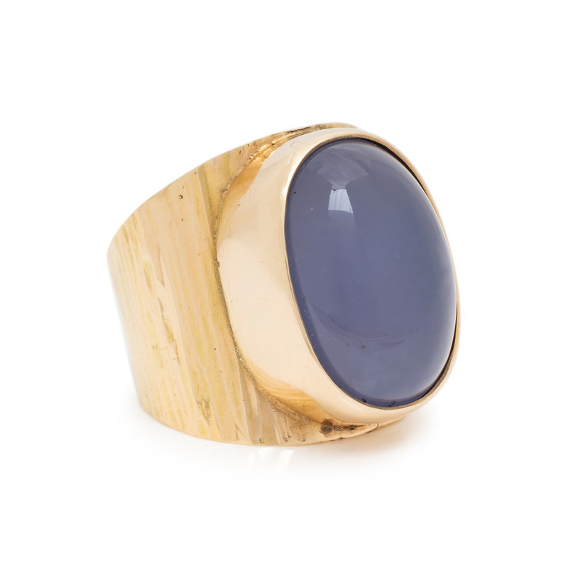 YELLOW GOLD AND BLUE CHALCEDONY RING
