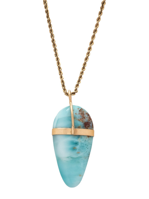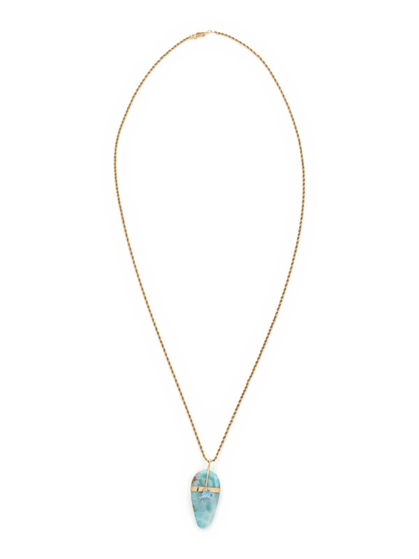 YELLOW GOLD, LARIMAR AND AQUAMARINE PENDANT/NECKLACE