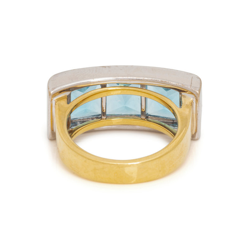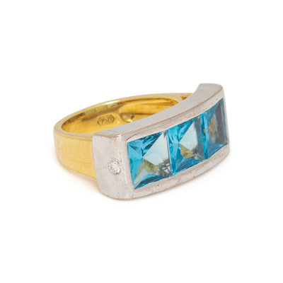 BICOLOR GOLD, BLUE TOPAZ AND DIAMOND RING