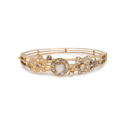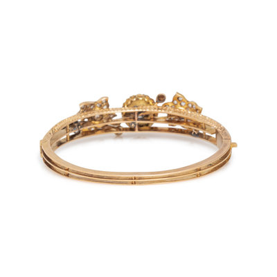 FRENCH, YELLOW GOLD AND DIAMOND BANGLE BRACELET