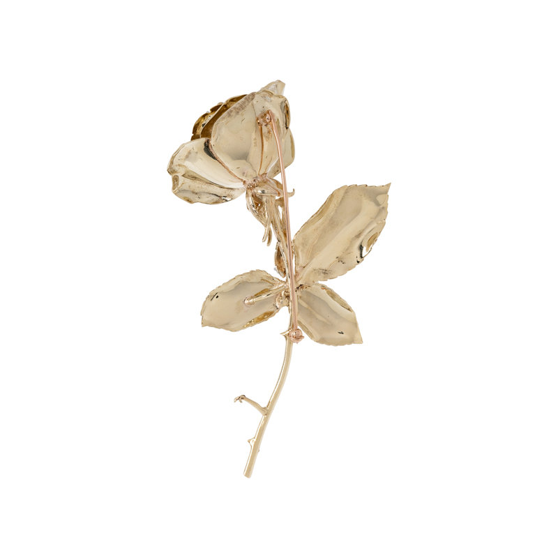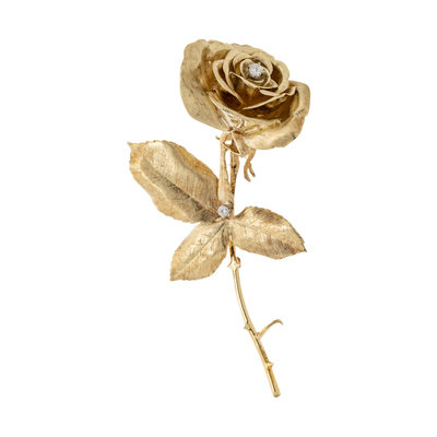 YELLOW GOLD AND DIAMOND ROSE BROOCH
