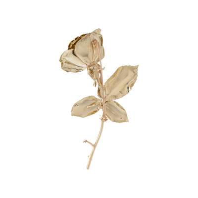Consisting of a textured and high polish rose containing two round brilliant cut diamonds weighing approximately 0.25 carat total. 3 7/8 x 1 1/2 inches.