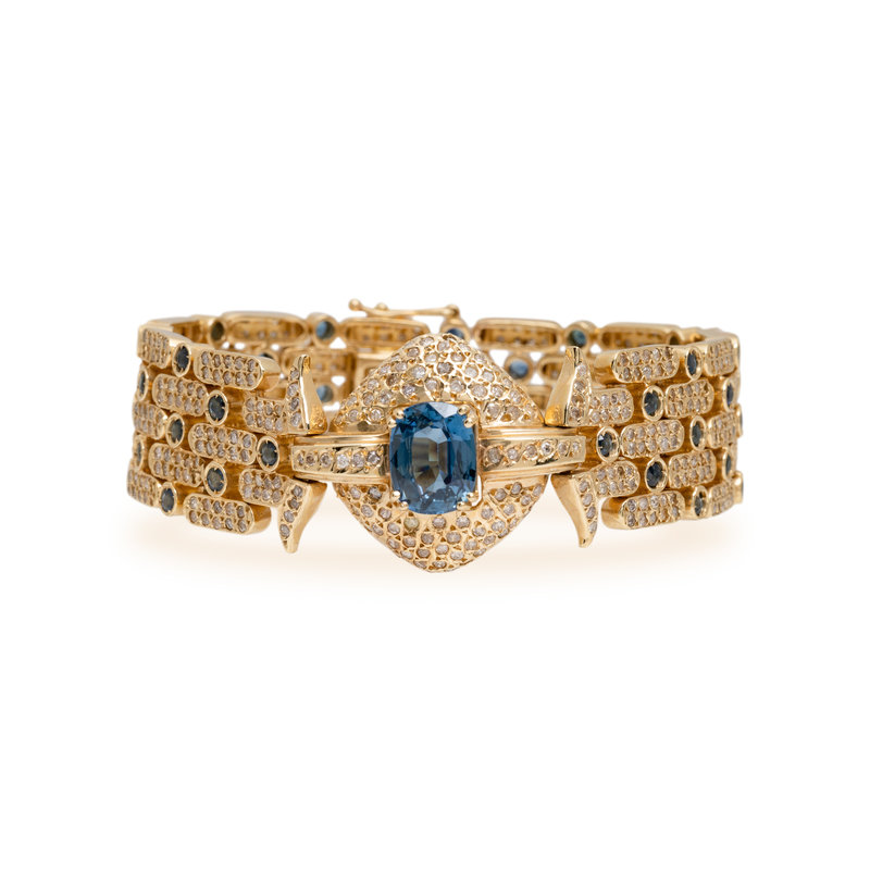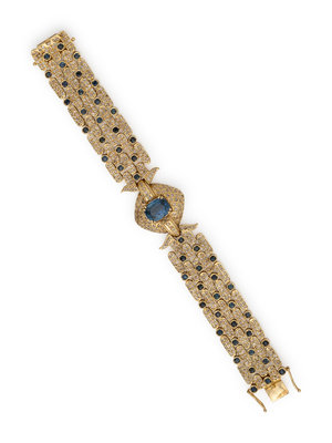 YELLOW GOLD, SYNTHETIC SAPPHIRE, SAPPHIRE AND DIAMOND BRACELET