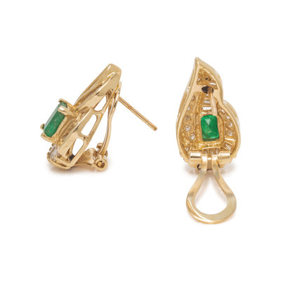 EMERALD AND DIAMOND EARCLIPS
