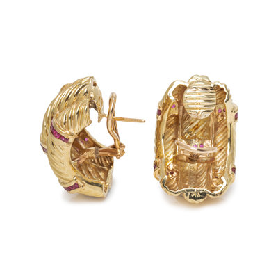 DAVID YURMAN, YELLOW GOLD AND RUBY EARCLIPS