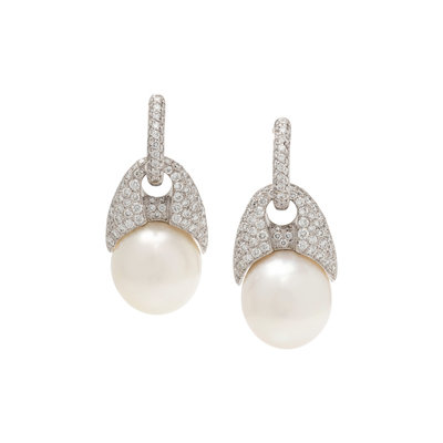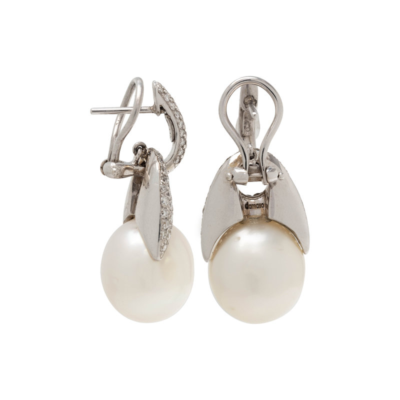 DAMASO, DIAMOND AND CULTURED PEARL EARCLIPS