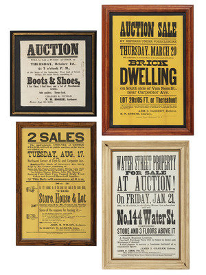 [ADVERTISING] -- [AUCTIONS]. A group of 4 broadsides promoting auctions of various properties and goods, comprising:
