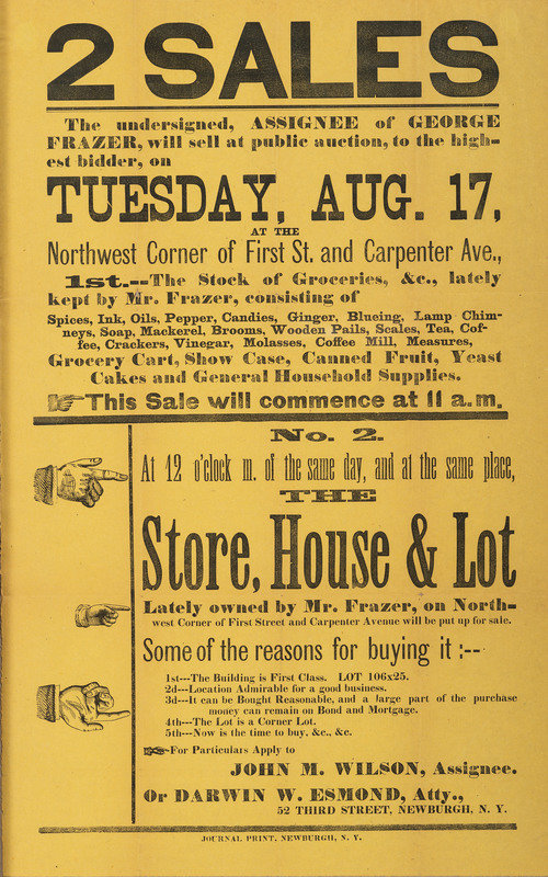 [With:] Auction Sale by Referee Under Foreclosure. Brick Dwelling. Newburgh, NY: Journal Print, 20 March 1879. 12 1/4 x 19 in. printed broadside, framed to 16 x 22 1/2 in.