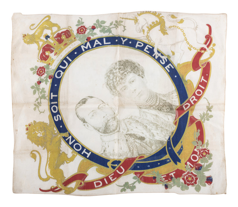 [ROYALTY]. A group of handkerchiefs, ceramics, and other ephemera from Queen VICTORIA, King GEORGE V, and King EDWARD VIII comprising: