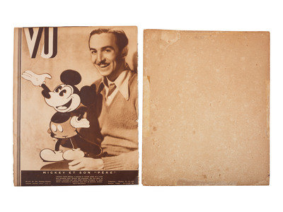 [With:] French periodical, VU, 10-1/2 x 14 in.; VOGEL, Lucien, 15 July 1931, No. 174. A weekly illustrated/pictorial magazine published from 21 March 1928 to 29 May 1940. Center “article” and rear cover devoted to Mickey Mouse and his “father,” Walt Disney.