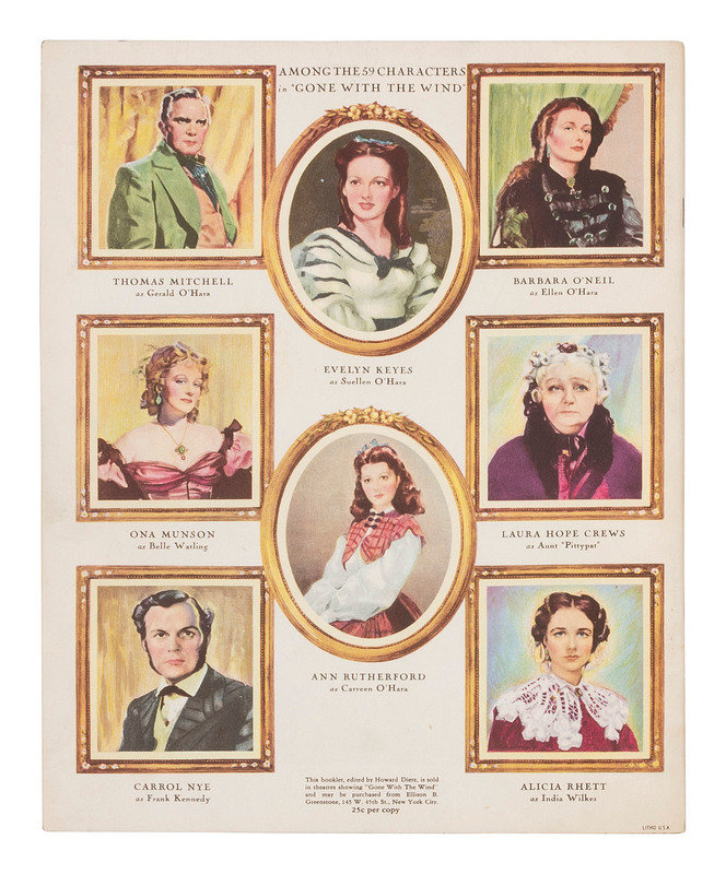 [With:] Gone with the Wind, “David O. Selznick’s production of Margaret Mitchell’s Story of the Old South.” Folio (9 x 12 in.), 20 pp. (including wraps). With scenes from the movie, lists of players, plus a few short comments on the production and a few of the main characters.